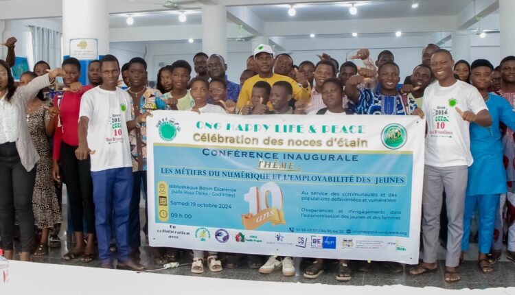 Après 10 années d’engagement communautaire, l’ONG Happy Life and peace Bénin célèbre ses 10 ans d’existence. La commémoration a commencé le samedi 19 octobre dernier a Godomey par une série d’activités dont une conférence inaugurale qui s’est déroulée le samedi 19 octobre 2024 à la Bibliothèque Bénin Excellence de Godomey, en présence de plusieurs personnalités, des responsables d’associations sœurs (Verre d’eau fraîche, Famille et Progrès, Réseau des alumnis FKA chaire Unesco, etc.) et une centaine de participants, sans oublier les membres de l’ONG.