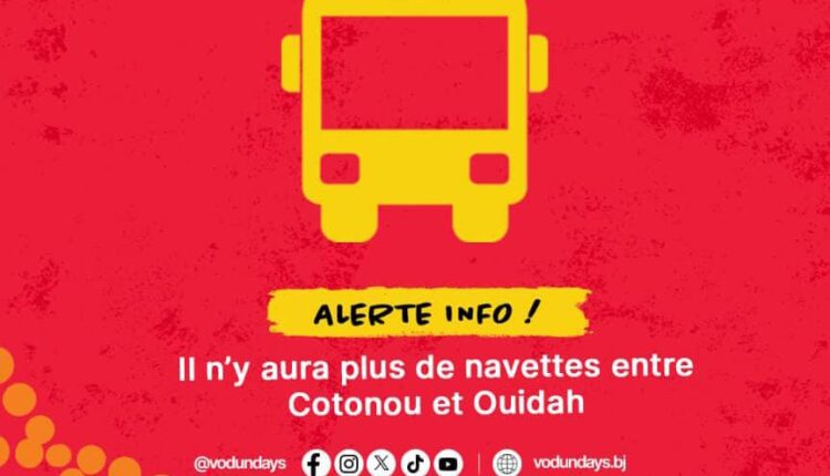 Les voyageurs sont invités à prendre leurs dispositions pour rejoindre Ouidah par d’autres moyens. Restez informés via le programme officiel et la chaîne WhatsApp dédiée. [Pour plus d’informations, abonnez-vous gratuitement à notre Page Facebook : https://www.facebook.com/profile.php?id=61567654973486 et à notre chaîne WhatsApp : https://whatsapp.com/channel/0029VaDoNrNBKfi6YZ0eKy0w]