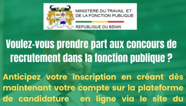 En prélude aux prochains concours de recrutement dans la fonction publique, le gouvernement béninois, à travers le Ministère du Travail et de la Fonction Publique, invite les citoyens intéressés à anticiper leur inscription.