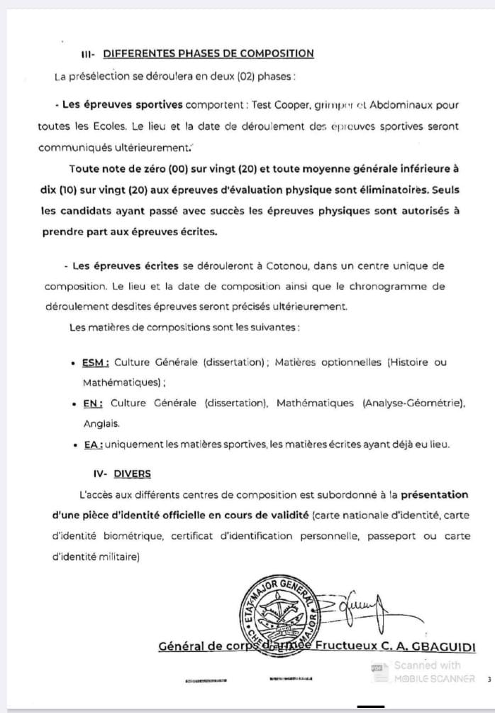 👉 Le communiqué officiel des Forces armées béninoises est joint en annexe pour plus de détails sur les conditions, le dossier de candidature et les différentes phases du concours. 👇🏽