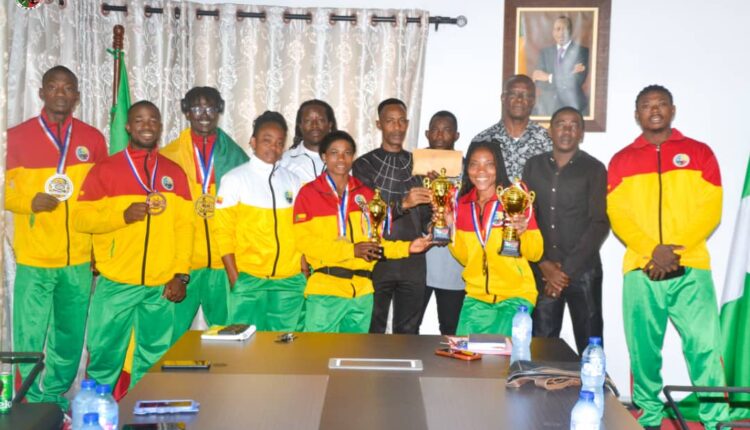 Les meilleurs bodybuilders béninois de la saison 2023 ont participé au Championnat international IFBB Mr Universe Nigerian 2023 à Lagos du 19 au 22 Octobre. Cette première participation à une compétition organisée par l’instance faîtière du bodybuilding dans le monde a généré de nombreux fruits. Des trophées, des médailles, des certificats, des cartes internationales IFBB, une IFBB PRO CARD, les Béninois sont revenus avec des valises chargées de récompenses. De leur retour à Cotonou lundi, ils ont bénéficié des honneurs dûs à leurs mérites. Mais avant, le Consul Général du Bénin à Lagos, Pierre Akowanou avait dopé le moral de la troupe.