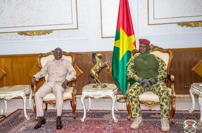 Après un tête à tête avec le général Abdourahmane Tiani au Niger la semaine dernière, l’ancien président de l’Assemblée nationale de la Côte d’Ivoire en exil depuis des années Guillaume Soro a été reçu en audience par le président de la transition Burkinabè le capitaine Ibrahim Traoré ce mardi 21 novembre 2023. L’homme se réjouit d’avoir foulé le sol Burkinabè .« J’ai été cinq ans durant loin du continent africain, en exil », a fait savoir Guillaume Soro.Il poursuit en disant. « C’est tellement saisissant de voir que je peux fouler, à nouveau, le sol du Burkina Faso, grâce à un gouvernement militaire, là où, les gouvernements prétendument démocratiquement élus ont refusé de reconnaître le droit du citoyen que je suis, du ouest-africain que je suis ».« J’ai rencontré le Président de la Transition ; j’ai été impressionné par sa grande vue des questions sous régionales », a t-il martelé. À l’en croire le Burkina Faso bénéficie d’un leadership « éclairé ». Par ailleurs l’hôte d’Ibrahim Traoré a félicité le régime militaire au Burkina Faso dans le cadre de la lutte contre le terrorisme . « Vous menez un combat intense, important contre le terrorisme dans votre pays », a ajouté Guillaume Soro.