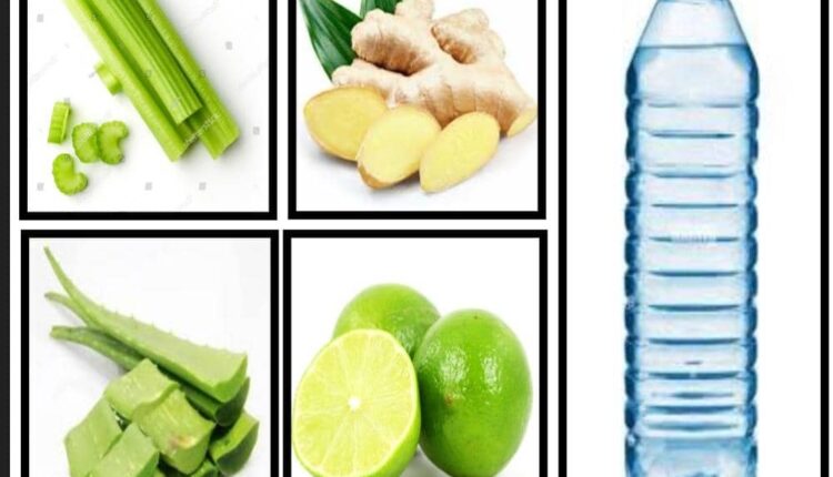 Vous avez juste besoin de : citron, feuille d’aloe vera, gingembre, tiges de céleri