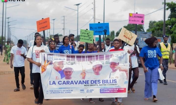 Dans le cadre de la mise en œuvre de son vaste projet “Nos Droits, Notre Vie”, le mouvement Billi Now Now à travers l’association iléwa a lancé la 2e phase de la campagne des Billis le jeudi 20 juin 2024 à Tori-Bossito. Cette activité qui s’étend sur trois jours a démarré par une grande caravane organisée dans la commune et qui a mobilisé les adolescents et les jeunes à travers une marche gigantesque, de la maison des jeunes jusqu’au Guichet Unique de Protection Sociale (GUPS) en passant par la mairie. À cette occasion, les jeunes ont rencontré à chaque étape de la marche le représentant du maire ainsi que l’assistante sociale du CPS à qui ils ont porté leur plaidoyer relatif aux droits à la Santé Sexuelle et Reproductive. Après la caravane place à été donnée au deuxième volet de ce projet qui est la Foire des Billi. Des jeunes venus de Cotonou et d’Abomey-Calavi intervenant dans le domaine de la santé et du développement social ont tenu des stands pour présenter à ceux de Tori-Bossito ce qu’ils savent faire afin d’inspirer ces derniers à faire pareil et vice-versa. C’est aussi l’occasion de facilité l’accès aux services SSR aux jeunes à travers des stands dédiés et la clinique mobile de l’ABPF déployée sur le site pour aider les jeunes dans le besoin des services ou informations à pouvoir accéder facilement. Sur les lieux de la grande Foire des Billi on y voit également un espace dédié aux jeux et aussi un espace pour sensibiliser les femmes sur de nouvelles applications développées pour les aider à mieux calculer leur cycle mensuel. En résumé, plusieurs initiatives qui concourent à l’épanouissement des adolescents et des jeunes ont été prises en compte pour la réussite de cet évènement inédit dans la commune de Tori-Bossito. Et ce n’est pas fini !