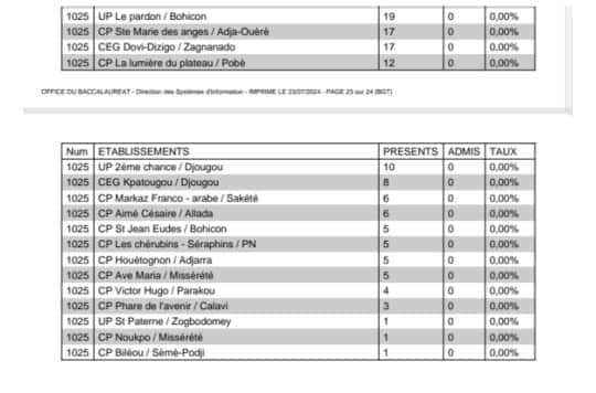Au Bénin la liste des Établissements ayant obtenu un taux de 00% de réussite est connue. Elle se présente comme suit 👇🏾