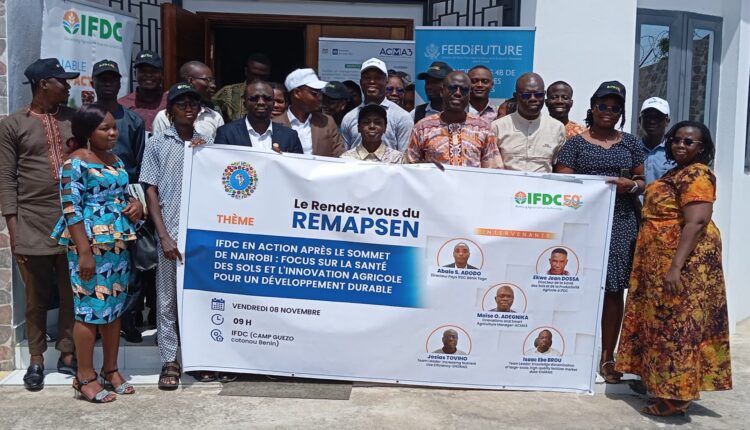Le Rendez-vous du Réseau des Médias Africains pour la Promotion de la Santé et de l’Environnement (Remapsen) s’est tenu le vendredi 8 novembre 2024 dans les locaux de l’International Fertilizer Development Center (IFDC) Bénin-Togo sur le thème : « IFDC en action après le sommet de Nairobi : Focus sur la santé des sols et l’innovation agricole pour un développement durable ». Un panel de cinq experts a entretenu les journalistes du Remapsen sur la thématique. Il s’agit de Abalo Adodo, Directeur pays IFDC Bénin-Togo ; Ekwe Jean Dossa, Directeur de la santé des et de la productivité agricole à IFDC ; Josias Toviho, Team Leader Increasing Nutrient Use Efficiency-Engrais ; Moïse Adegnika, Innovation and Smart Agriculture Manager ACMA 3.