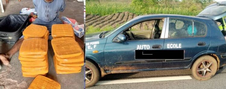 Bénin : 43 plaquettes de drogue découvertes dans un véhicule d’auto-école sur l’axe Effèoutè–Carrefour Savè