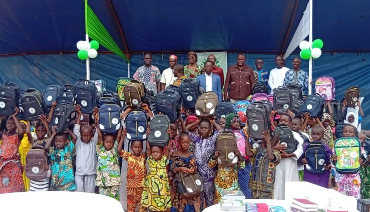 Sous les applaudissements nourris de l’assemblée, cent élèves, soit les cinq premiers de chaque classe du CI au CM2 dans les trois groupes pédagogiques de l’école, ont reçu des kits scolaires complets : sacs, cahiers, stylos, ardoises, boîtes de craie, etc.