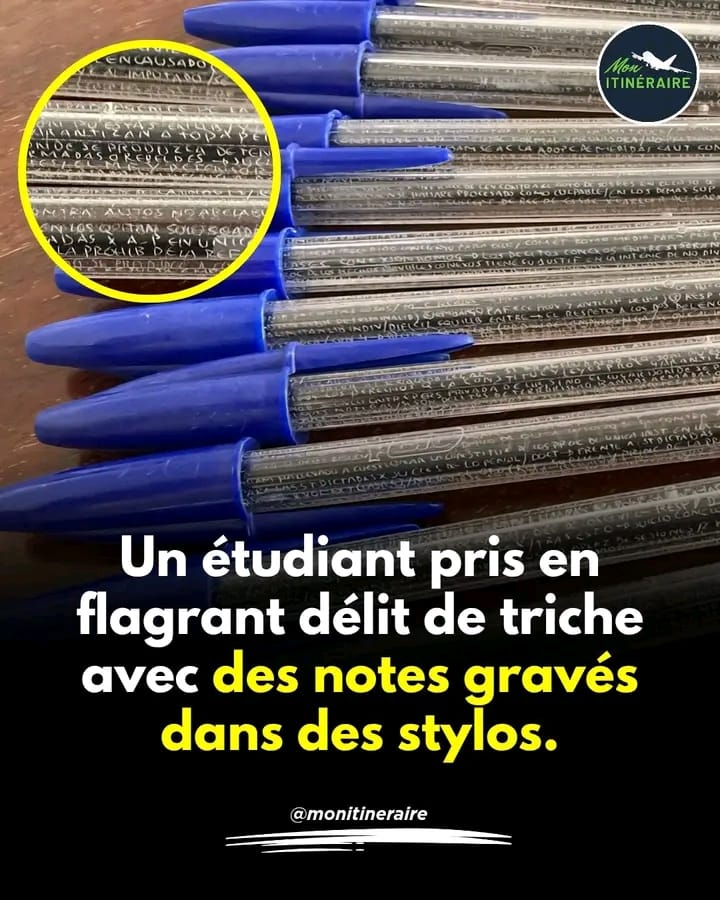 En Espagne, un étudiant en droit a fait preuve d’une créativité étonnante , mais totalement risquée. Pour son examen de procédure pénale, il a transformé 11 stylos BIC transparents en véritables antisèches miniatures.