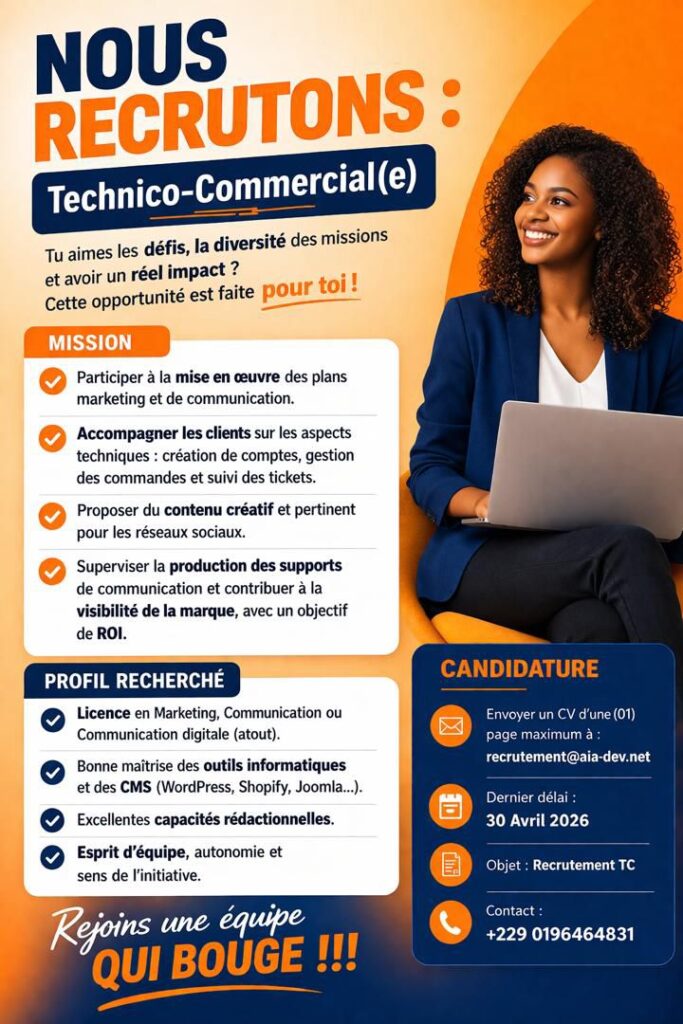Envoyer un CV d’une (01) page maximum à : recrutement@aia-dev.net